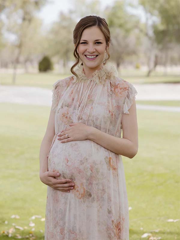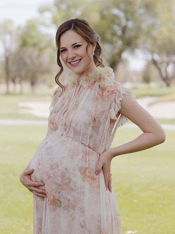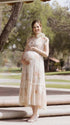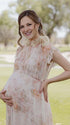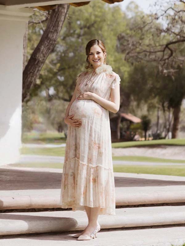 Apricot Floral Ruffle 3D Flowers Tie Flowy Photoshoot Maternity Maxi Dress