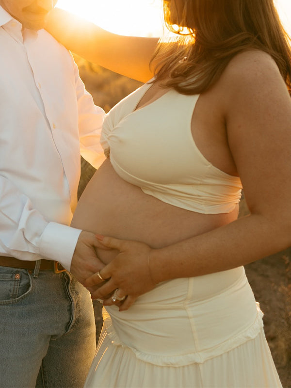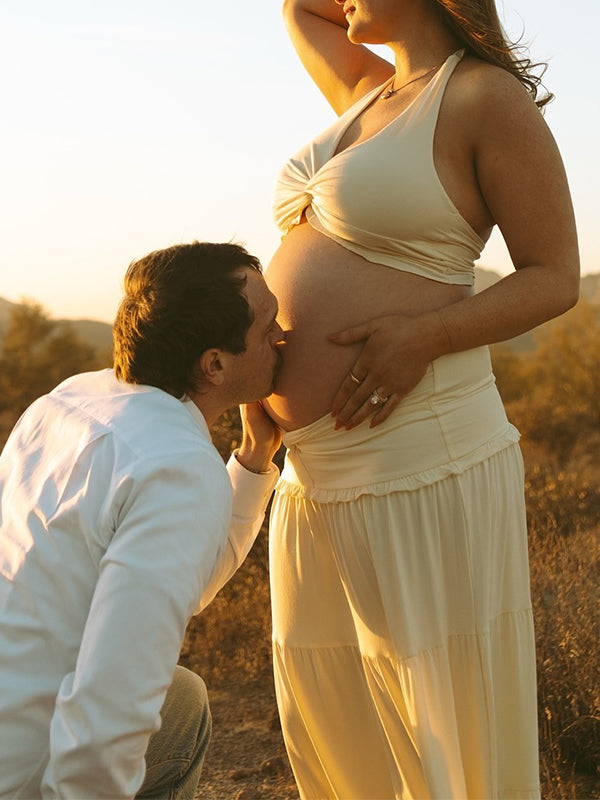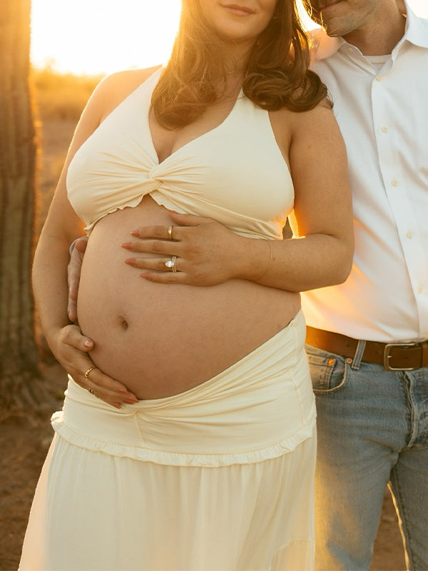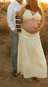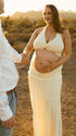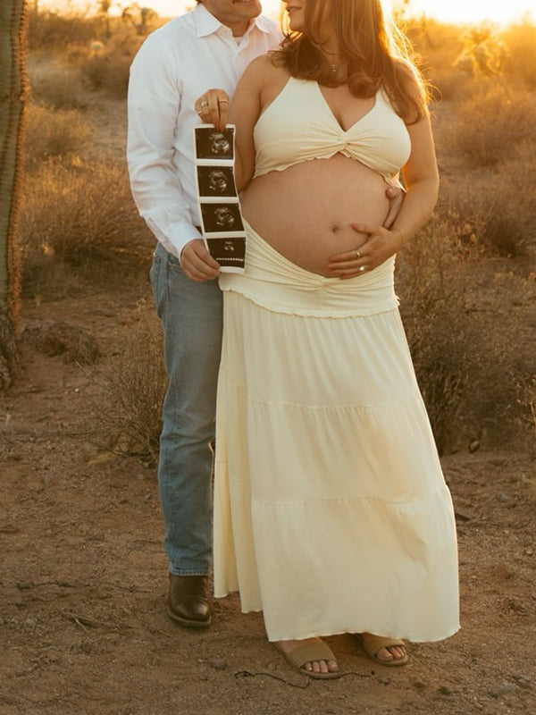 Momsmood Apricot 2-in-1 Falbala Ruffle Twist Halter Neck Boho Photoshoot Baby Shower Maternity Maxi Dress