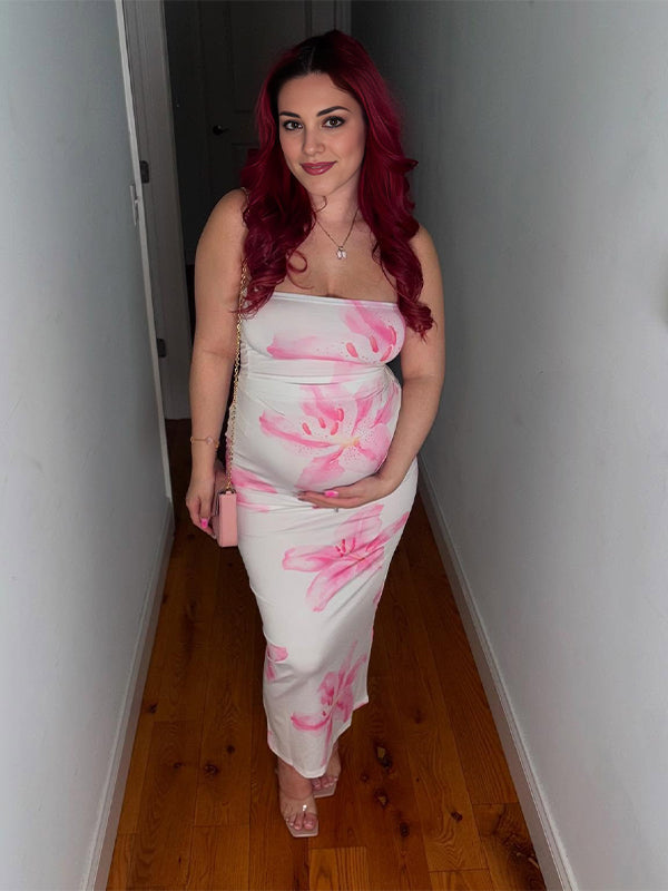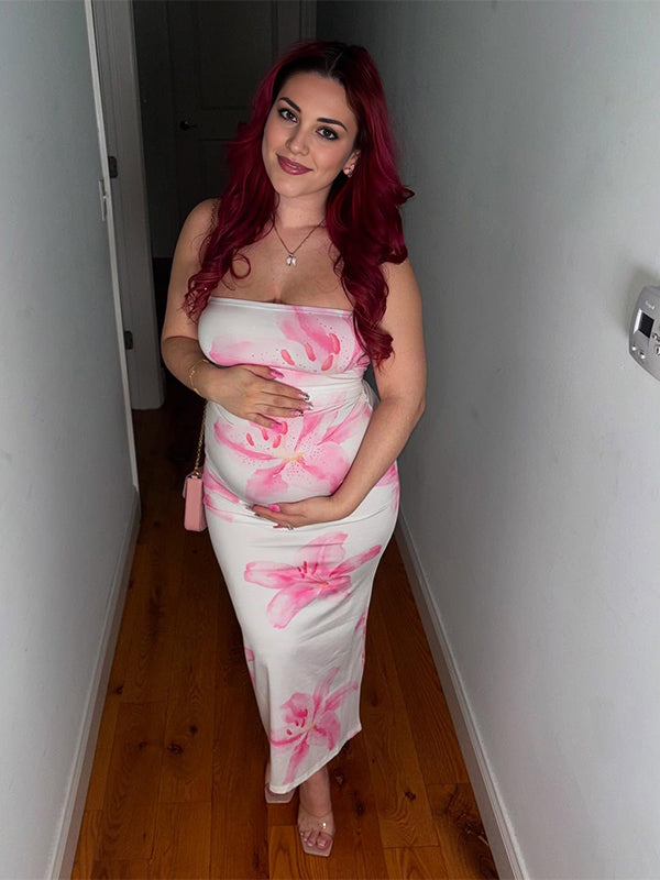 Momsmood Bandeau Flowers Bodycon Baby Shower Maternity Maxi Dress