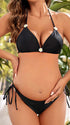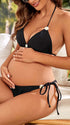 Momsmood Black Cut Out Tie Back Halter Neck Daisy Crop 2-in-1 Boutique Holiday Bikinis Maternity Swimwear