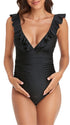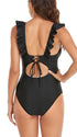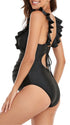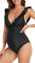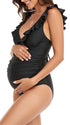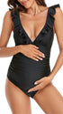 Momsmood Black Ruffle Back Cut Out One Piece Fashion Beach Vacation Fashion Maternity Swimsuit Swimwear