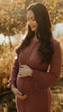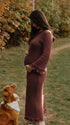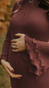Momsmood Brown Knit Ruffle Backless Flare Sleeve Maternity Maxi Dress