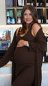 Momsmood Brown Knit Tank Maxi Dress And Long Cardigan Two Piece Set Casual Maternity Knitwear