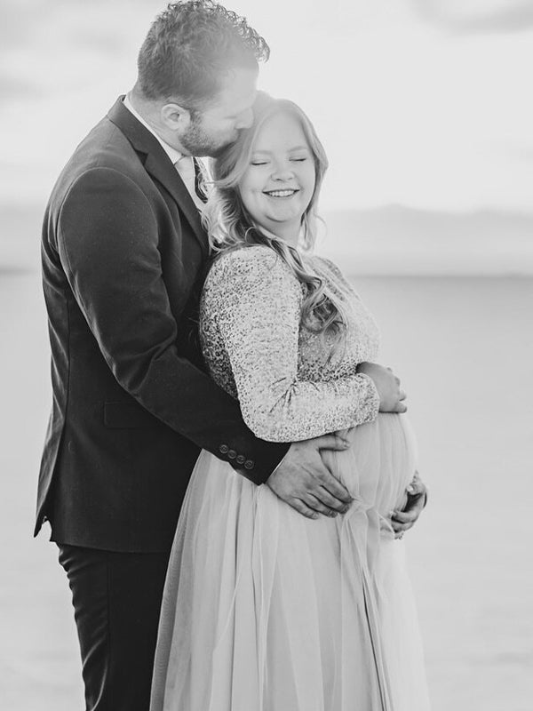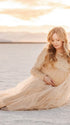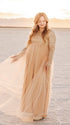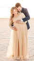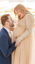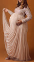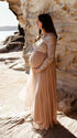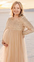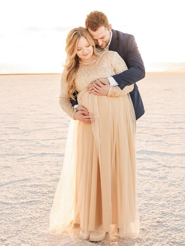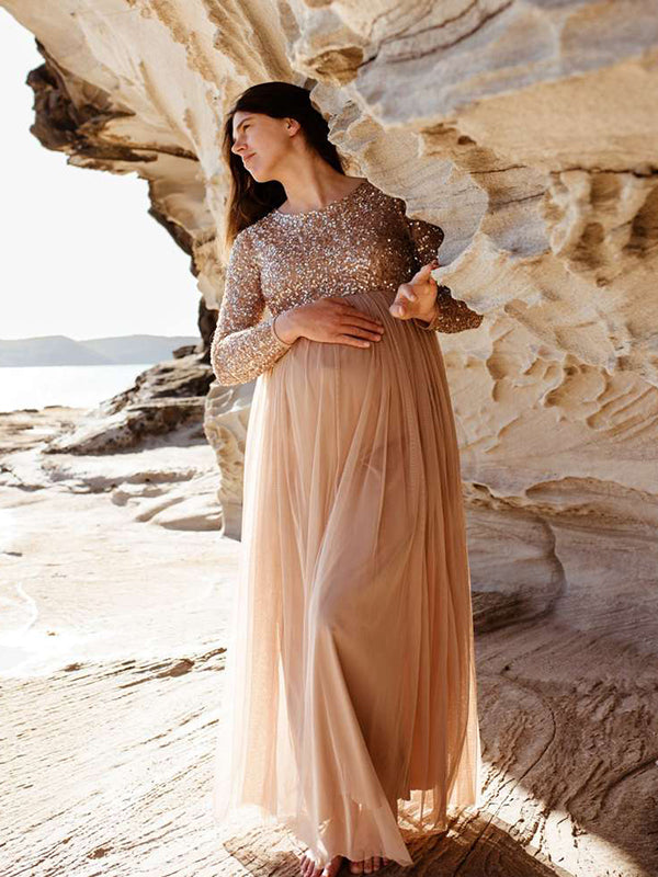 Momsmood Champion Sequin Tulle Splicing Long Sleeve Party Gown Photoshoot Maternity Baby Shower Maxi Dress