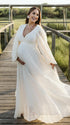 Effortlessly ethereal, our Cream White Boho Maternity Maxi Dress elevates your glow across every cherished occasion. Crafted with luxe fabric, it features artful ruching, a captivating backless design, and a voluminous big swing silhouette, paired with a flattering V-neck and flowy lantern sleeves. Cascading ruffle-falbala accents add romantic charm, gently accommodating your bump while blending bohemian elegance with timeless allure. Pair with strappy heels for formal glamour or sandals for beachy sophistication—your perfect statement piece!