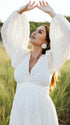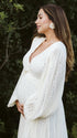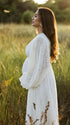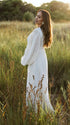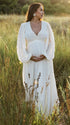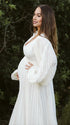 Momsmood Cream White Ruched Backless Big Swing Lantern Sleeve Boho Maternity Maxi Dress