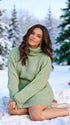 Momsmood Christmas Green Knitting High Neck Baby Shower Warm Sage Maternity Sweater Dress