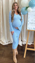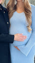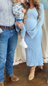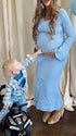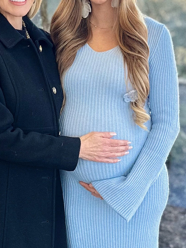 Momsmood Knit 3D Flowers V-neck Flare Sleeve Bodycon Maternity Maxi Dress
