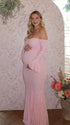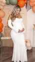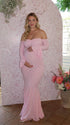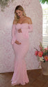 Momsmood Lace Off Shoulder Mermaid Baby Shower Maternity Maxi Dress