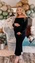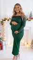 Momsmood Christmas Off Shoulder Backless Crochet Maternity Sweater Baby Shower Maxi Dress