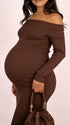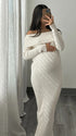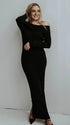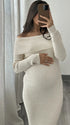 Momsmood Off Shoulder Knit Bodycon Mermaid Going Out Baby Shower Maternity Sweater Maxi Dress