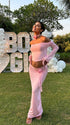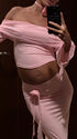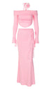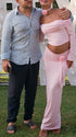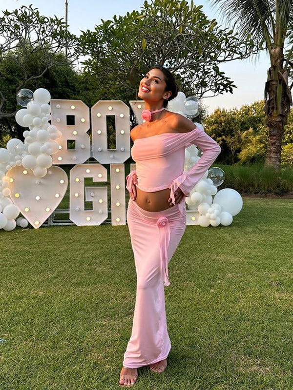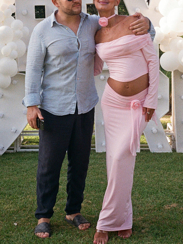 Momsmood Pink 3D Flowers Off Shoulder Ruffle Falbala Draped Two Piece Set Crop Top And Skirt Chic Going Out Vacation Maternity Photoshoot Baby Shower Maxi Dress