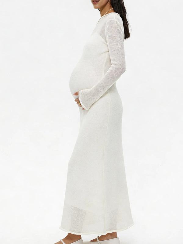 Elegant and versatile, our Two-Piece Maternity Maxi Dress fits diverse occasions—photoshoots, baby showers, outings, daily wear, baby moons, and gender reveals—keeping you graceful and comfortable. Its round neck pairs with long flare sleeves for soft charm, while the two-piece set adds style flexibility. The solid color brings understated sophistication, and the bodycon fit hugs pregnancy curves gently. It lets you pose confidently for photos or shine in daily/special moments, blending elegance with practicality. A must-have for multi-scene maternity wardrobes—embrace refined maternity style!