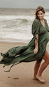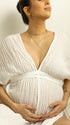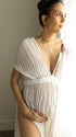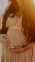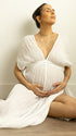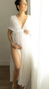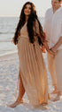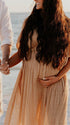 Momsmood V-Neck Linen Cotton Bohemian Backless Thigh High Side Slits Tassel Vacation Photoshoot Maternity Maxi Dress