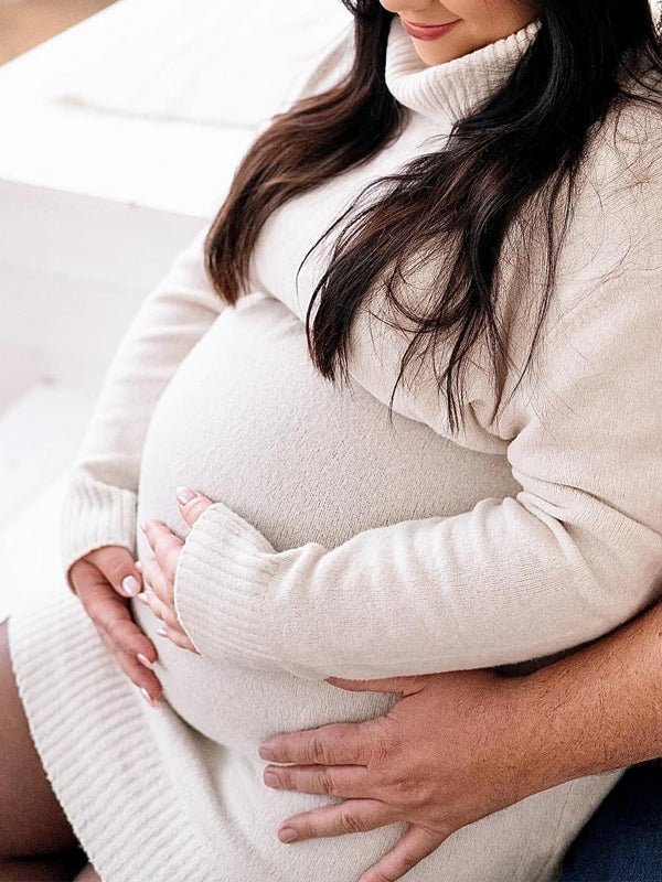 Leisurely and delicate, this White Maternity Mini Dress features a sleek high neck and soft knit texture for a fresh, timeless look. It’s adorned with exquisite crochet details that add a touch of elegance, and the full-length long sleeves provide thoughtful coverage for versatile styling. The solid-color design keeps it easy to match, while its mini silhouette gently fits pregnancy curves for all-day comfort. It’s perfect for countless scenarios—from photoshoots and baby showers to weddings, proms, dinners, beach getaways, babymoons and daily outings—blending casual leisure with maternity-friendly practicality for sweet, stylish moments!