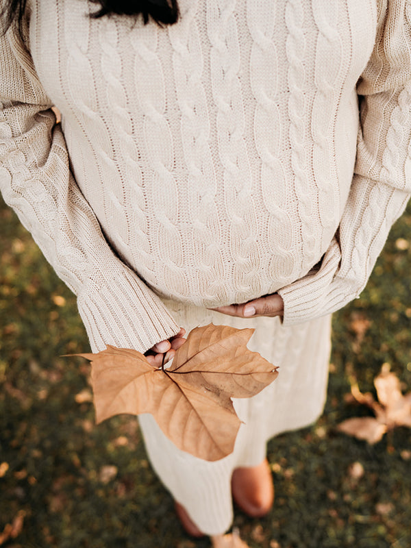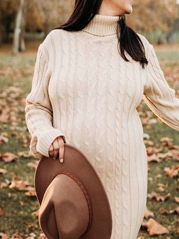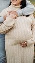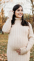 Leisurely and delicate, this White Maternity Maxi Dress features a cozy twisted-knit texture and elegant high neck for a sleek look. It’s adorned with exquisite crochet details and a practical side slit that adds movement while ensuring easy mobility. The full-length long sleeves offer thoughtful coverage, and its solid-color design keeps the style timeless and versatile. The silhouette gently hugs pregnancy curves for all-day comfort, and it fits seamlessly into various occasions—from photoshoots and baby showers to weddings, proms, dinners, beach vacations, babymoons and daily outings—blending casual leisure with maternity-friendly functionality for charming, stylish moments!