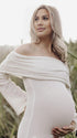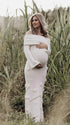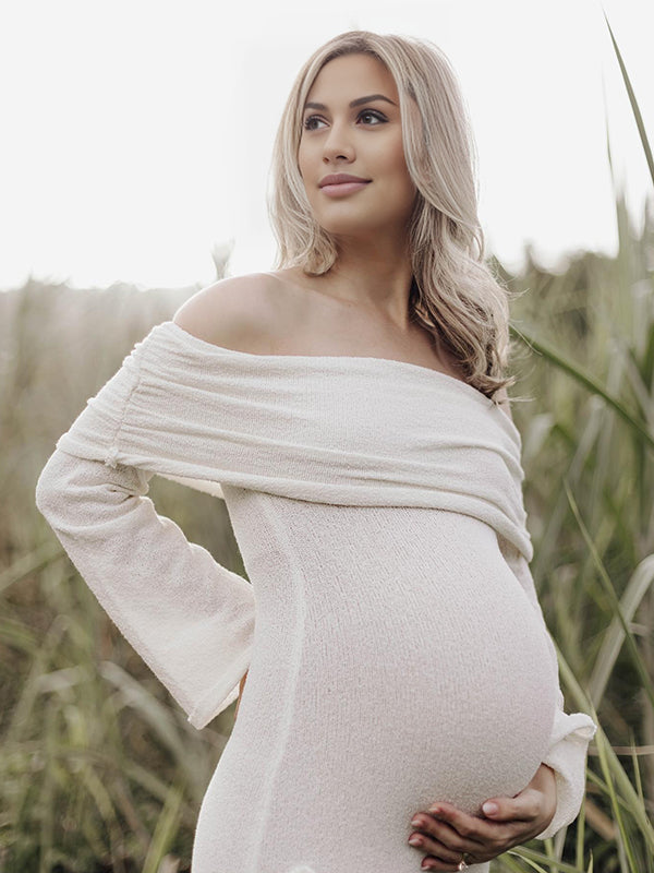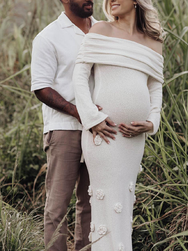 Effortlessly sophisticated, our White Off Shoulder Maternity Maxi Dress amplifies your pregnancy glow from bump to baby and beyond. It features intricate 3D floral embellishments, an enchanting off-shoulder boat neck, and flowing flare sleeves, paired with a alluring bandeau backless design. The contouring bodycon mermaid fit flatters your curves while adapting to your growing belly, exuding timeless glamour. Versatile for daily wear, dinners, baby showers, and parties, this wardrobe staple elevates every moment—pair with heels for elegance or flats for laid-back charm!