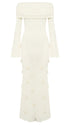 Momsmood White Off Shoulder 3D Flowers Knitting Backless Bodycon Mermaid Cocktail Party Gowns Bandage Photoshoot Maternity Maxi Dress