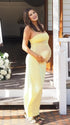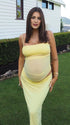 Momsmood Yellow 2-in-1 Sheer Mermaid Bodycon Fashion Vacation Party Photoshoot Baby Shower Maternity Maxi Dress